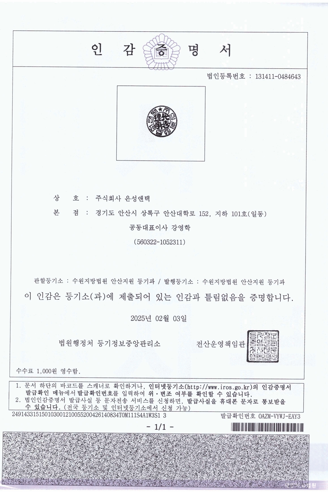 법인 인감 증명서