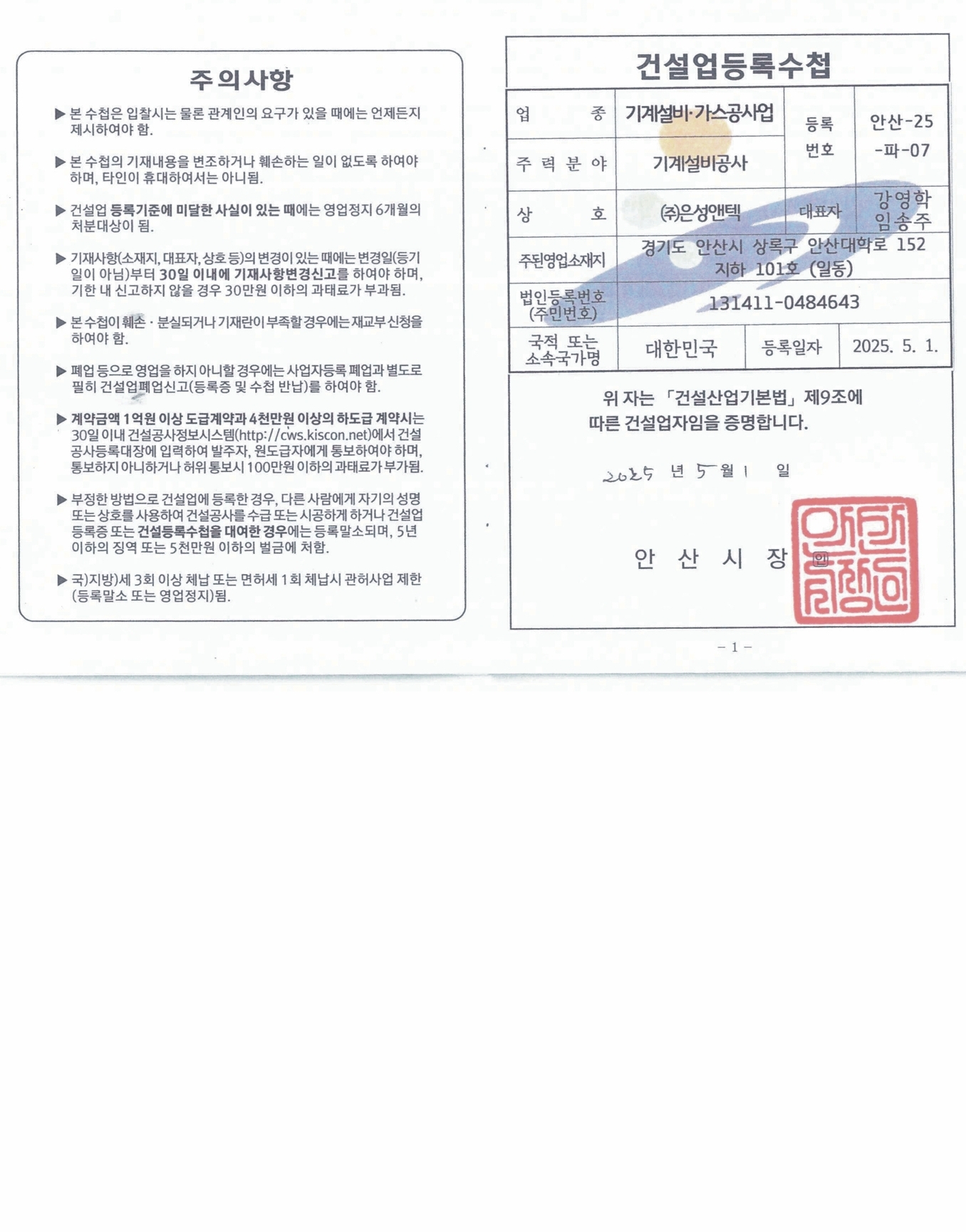 건설업등록증