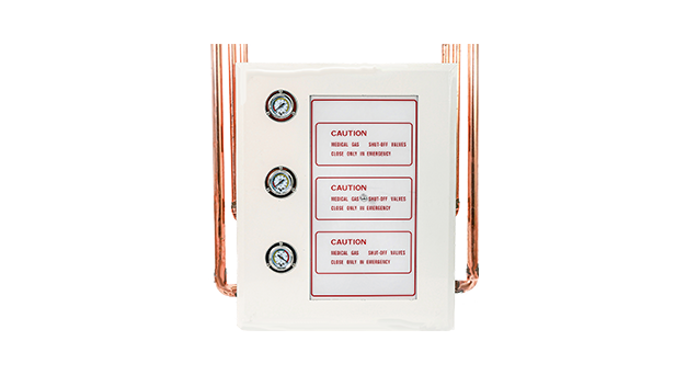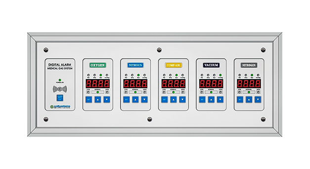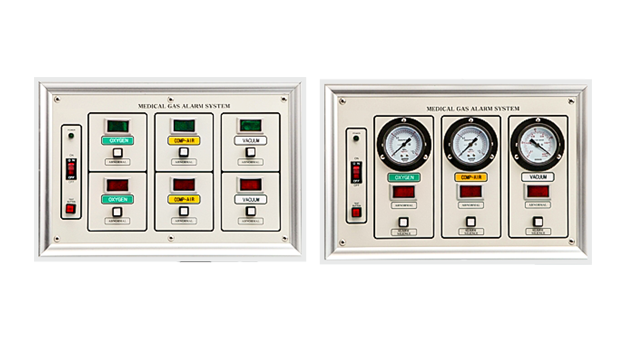 가스 공급장치의 좌, 우측 작동 여부, 가스 고갈 여부, 압축공기와 흡인 펌프의 좌, 우 등 동작 여부 및 과전류에 의한 기계의 이상 유무 등 의료가스 중앙 공급 실내 모든 기기의 작동 상태를 총괄 감지하여 이상발생 시 경보음을 울려 돌발 황에 신속하게 대처하기 위한 장치로서 상시 인원이 거주하는 감시실 및 통제실에 설치하는 것이 바람직합니다.